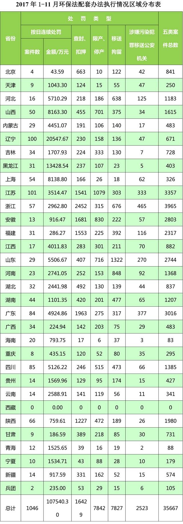 環(huán)保部想媒體通報2017年1-11月各地執(zhí)行《環(huán)境保護(hù)法》配套辦法及移送環(huán)境犯罪案件的情況。并對1-11月份案件較多的浙江、江蘇、廣東、安徽、山東、福建等地進(jìn)行表揚。