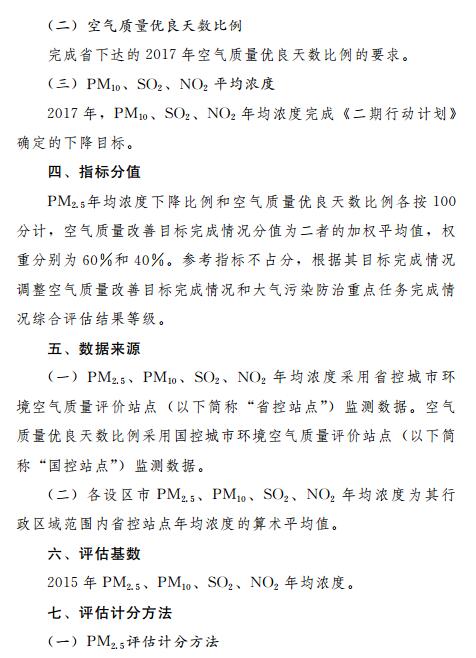 第二條本辦法適用于對(duì)我省各設(shè)區(qū)市人民政府(以下簡(jiǎn)稱(chēng)“各市政府”)大氣污染防治目標(biāo)任務(wù)完成情況的評(píng)估。