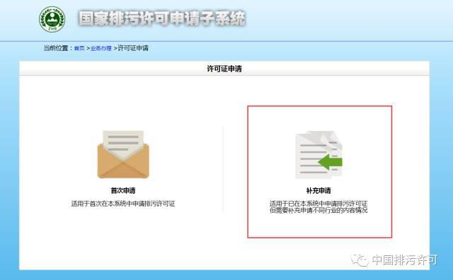 正確的操作是——進(jìn)入“國家排污許可證信息公開系統(tǒng)”的“申請(qǐng)子系統(tǒng)”(http://permit.mep.gov.cn/permitExt/outside/LicenseRedirect),進(jìn)行“補(bǔ)充申請(qǐng)”。