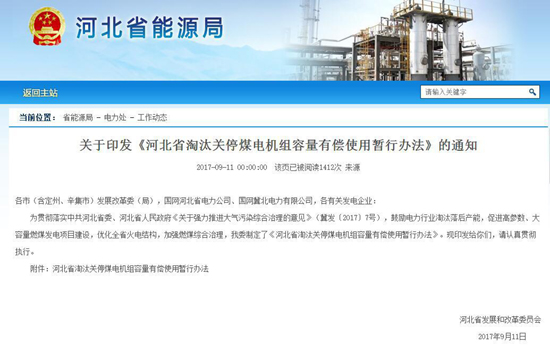 關于《河北省淘汰關停煤電機組容量有償使用暫行辦法》的通知