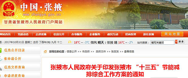 關(guān)于張掖市“十三五”節(jié)能減排綜合工作方案
