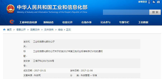 工信部2017年第三批行業(yè)標(biāo)準(zhǔn)制修訂計劃 涉及多項(xiàng)環(huán)保標(biāo)準(zhǔn)