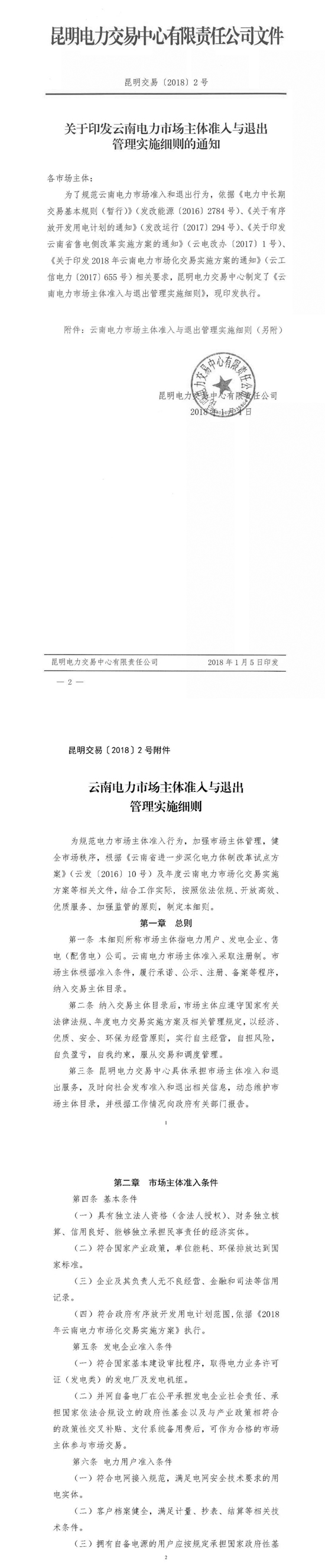 云南電力交易中心發(fā)布:電力市場主體準入與退出管理實施細則
