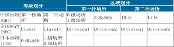 中國、美國、日本危險區(qū)域劃分對照