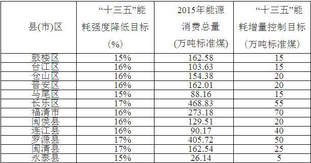 十三五”各縣(市)區(qū)能耗總量和強度“雙控”目標(biāo)