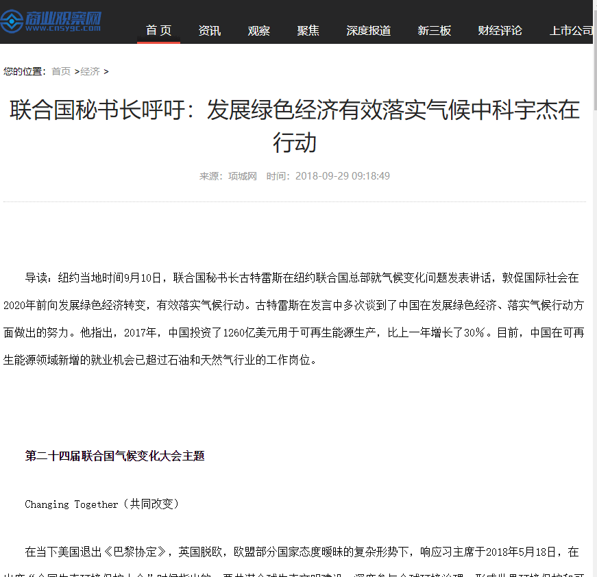 媒體爭(zhēng)相報(bào)道:發(fā)展綠色經(jīng)濟(jì)有效落實(shí)氣候中科宇杰在行動(dòng)