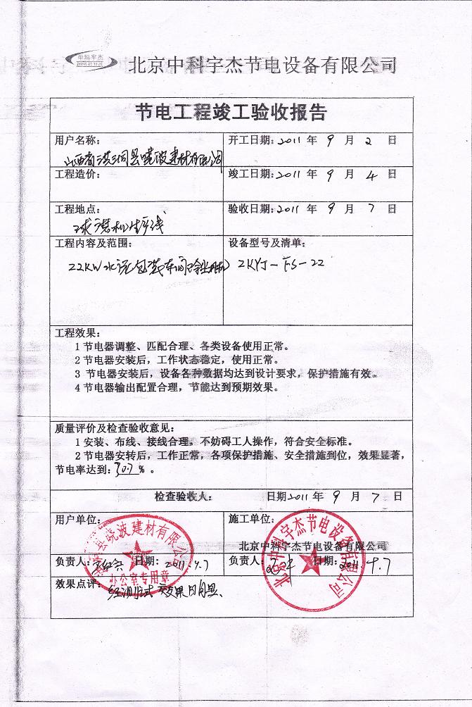 安裝調(diào)試驗(yàn)收,節(jié)能效率達(dá)到30.7%,投資回報(bào)期一年半,按質(zhì)保十年計(jì)算,此項(xiàng)節(jié)能工程能為山西洪洞縣曉波建材有限公司帶來四百多萬人民幣的直接經(jīng)濟(jì)效益。