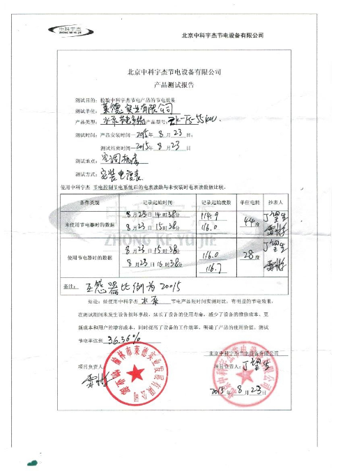 工程竣工后,通過現(xiàn)場讀表,節(jié)電達到36.36%,效果明顯。改造工程一方面降低了用電量,減少了電費支出,另一方面保護了節(jié)能設備,延長設備壽命,減少維護成本。