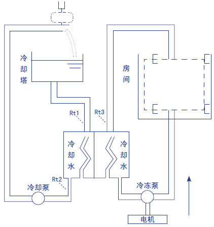 由冷凍泵及冷凍管道組成。從冷凍機(jī)組流出的冷凍水由冷凍泵加壓送入冷凍水管道,在室內(nèi)進(jìn)行熱交換,帶走室內(nèi)的熱量,使室內(nèi)的溫度下降。