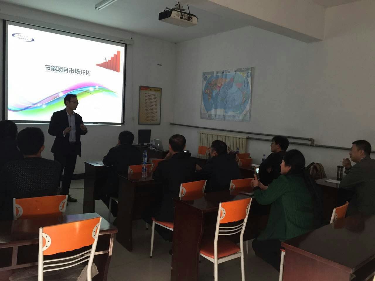 中科宇杰董事長郝澤忠先生也是做好了充分的準(zhǔn)備,積極解答了代理商們在項目實施過程中存在的問題,并提出具體有效的解決方案,并在培訓(xùn)會場中為大家詳細(xì)分析了目前我國節(jié)能項目市場前景,分享了節(jié)能項目市場開拓的經(jīng)驗。